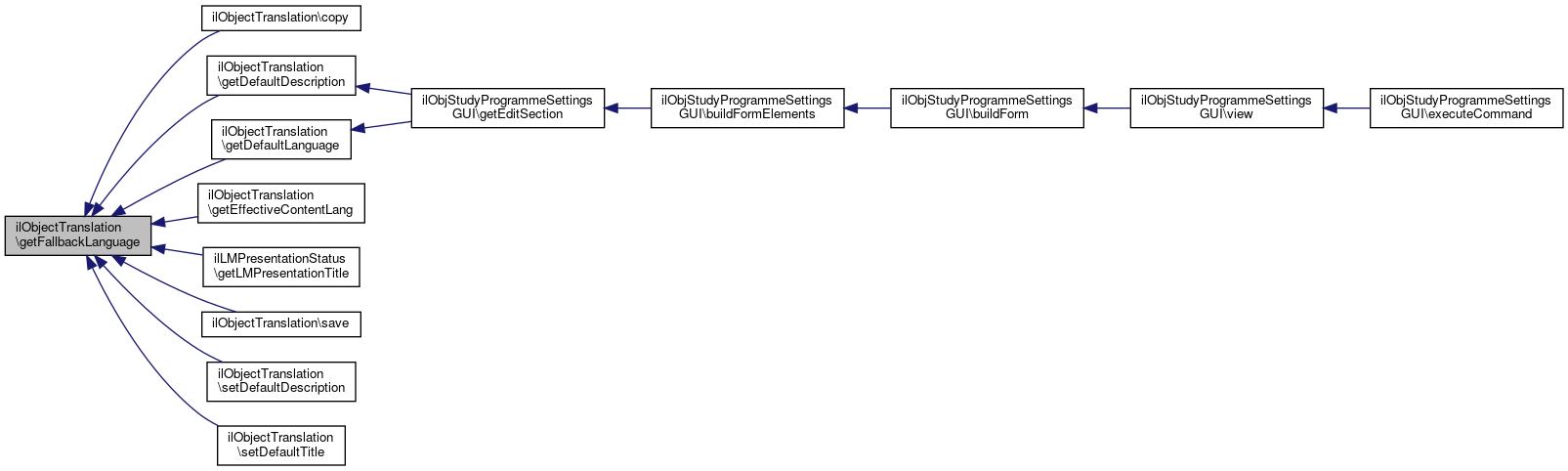Here is the call graph for this function:| ilObjectTranslation::getFallbackLanguage | ( | ) |