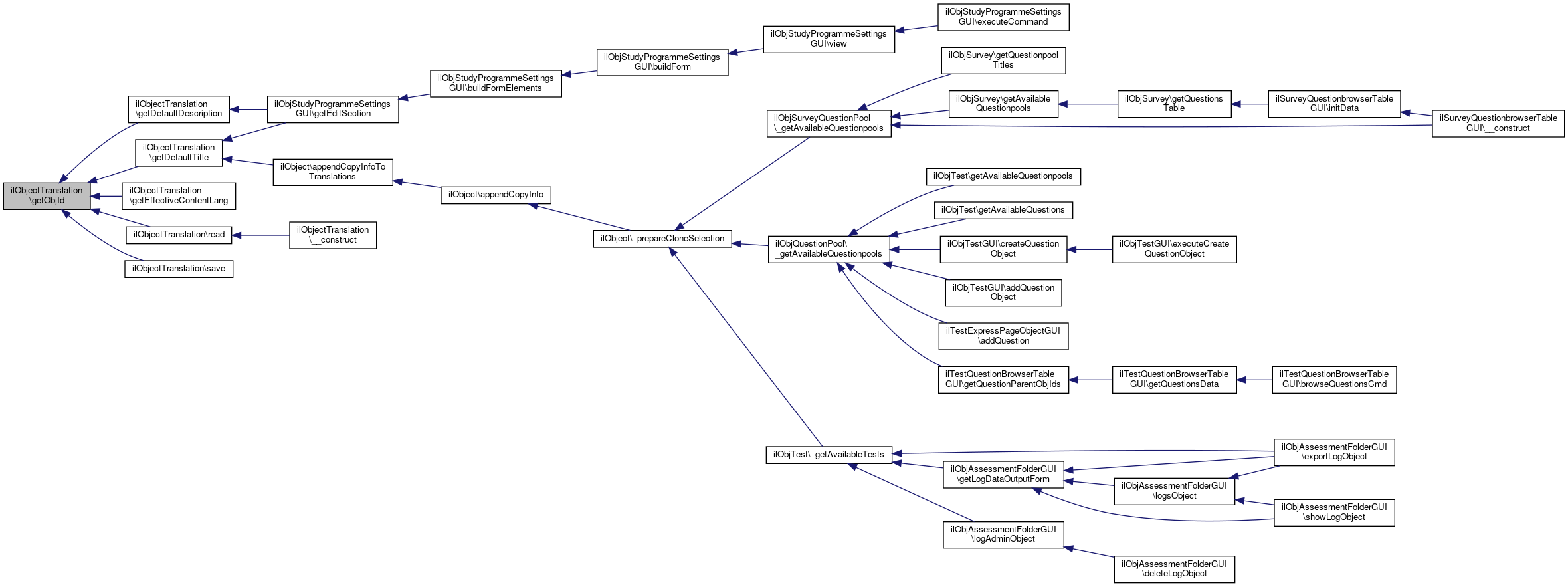 Here is the caller graph for this function:| ilObjectTranslation::getObjId | ( | ) |