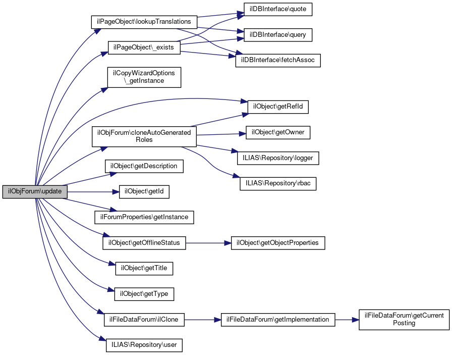 Here is the call graph for this function:| ilObjForum::update | ( | ) |