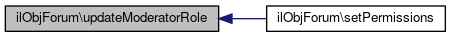 Here is the caller graph for this function:| ilObjForum::updateModeratorRole | ( | int | $role_id | ) |