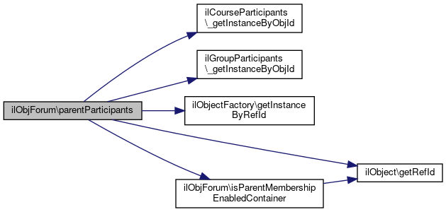 Here is the caller graph for this function:| ilObjForum::parentParticipants | ( | ) |