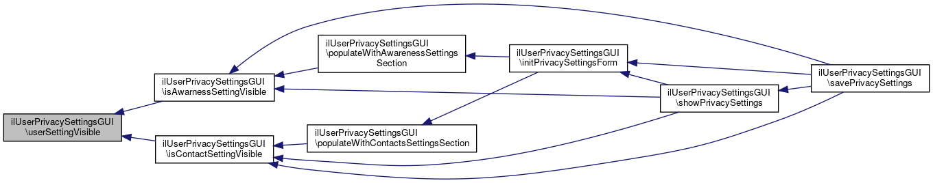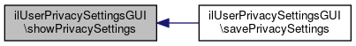 Here is the caller graph for this function:| ilUserPrivacySettingsGUI::savePrivacySettings | ( | ) |