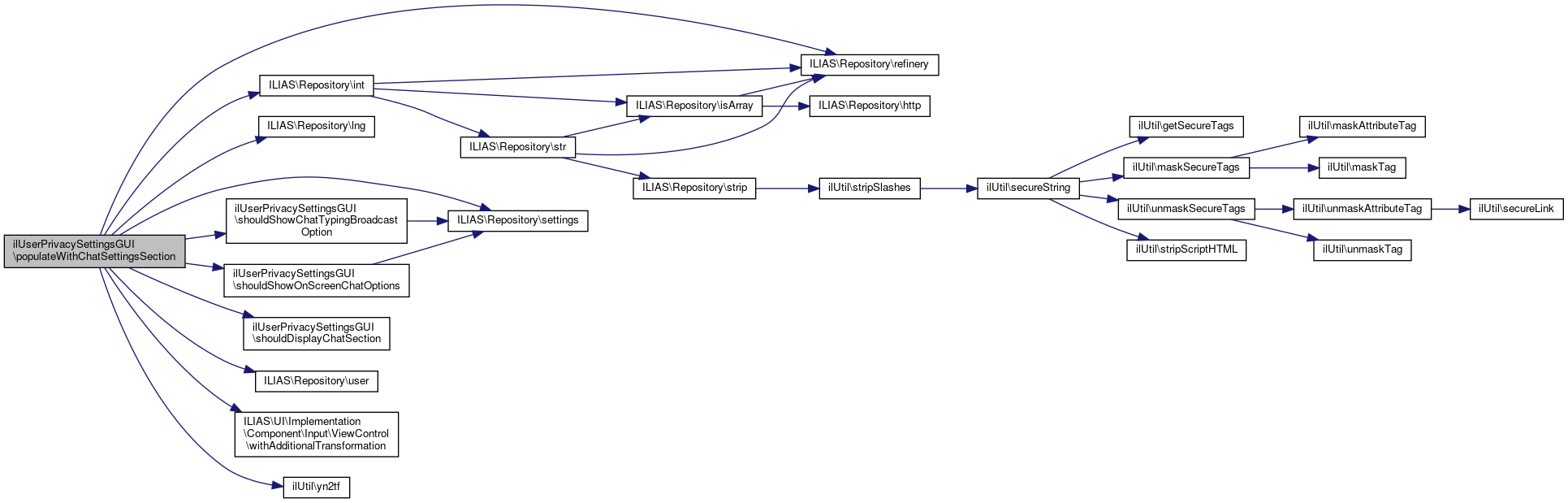 References ILIAS\Repository\int(), ILIAS\Repository\lng(), ILIAS\Repository\refinery(), ILIAS\Repository\settings(), shouldDisplayChatSection(), shouldShowChatTypingBroadcastOption(), shouldShowOnScreenChatOptions(), ILIAS\Repository\user(), ILIAS\UI\Implementation\Component\Input\ViewControl\withAdditionalTransformation(), and ilUtil\yn2tf().
