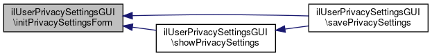 Here is the call graph for this function:| ilUserPrivacySettingsGUI::initPrivacySettingsForm | ( | ) |