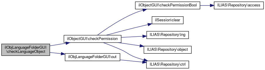 Here is the call graph for this function:| ilObjLanguageFolderGUI::checkLanguageObject | ( | ) |