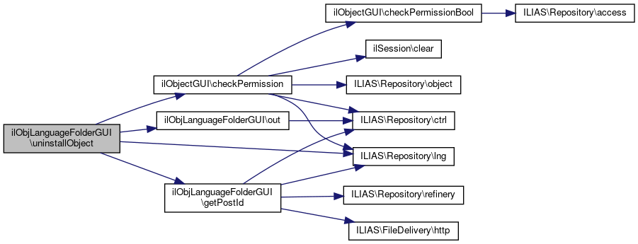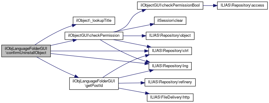 Here is the call graph for this function:| ilObjLanguageFolderGUI::uninstallObject | ( | ) |