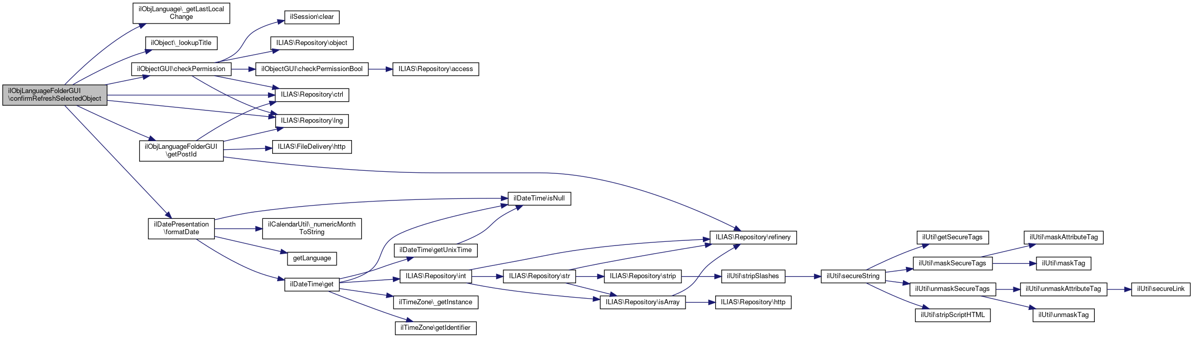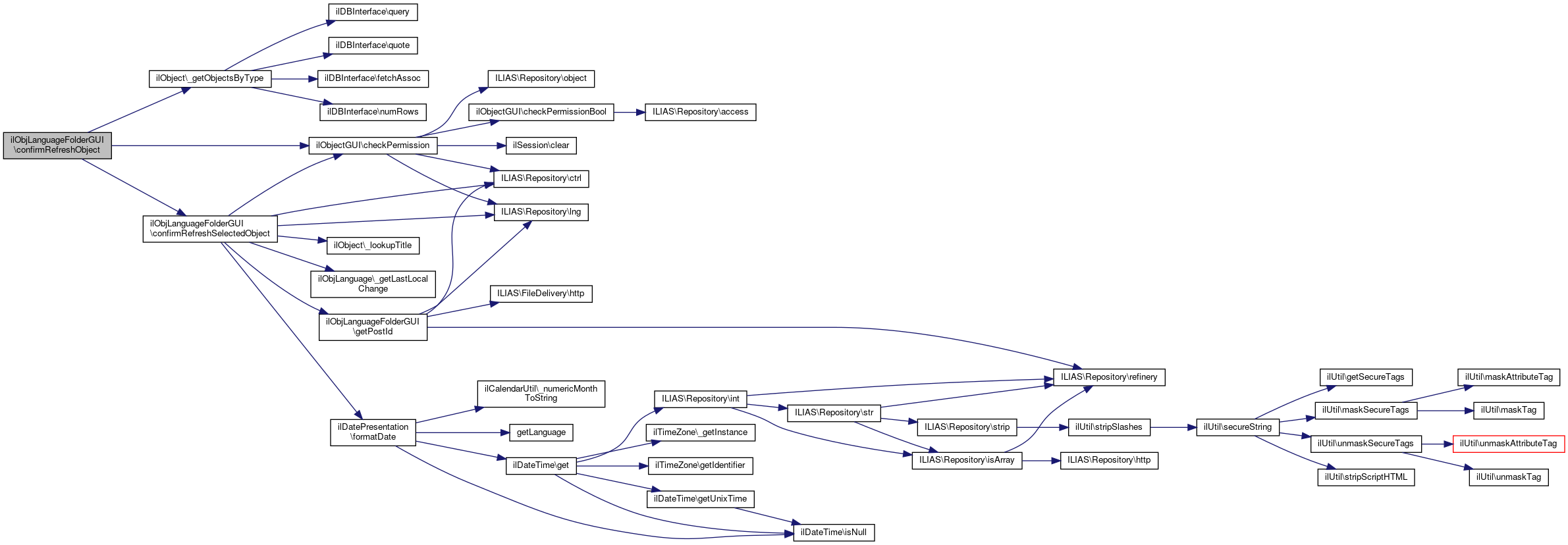 Here is the call graph for this function:| ilObjLanguageFolderGUI::confirmRefreshObject | ( | ) |