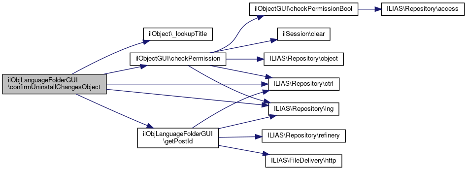 Here is the call graph for this function:| ilObjLanguageFolderGUI::uninstallChangesObject | ( | ) |