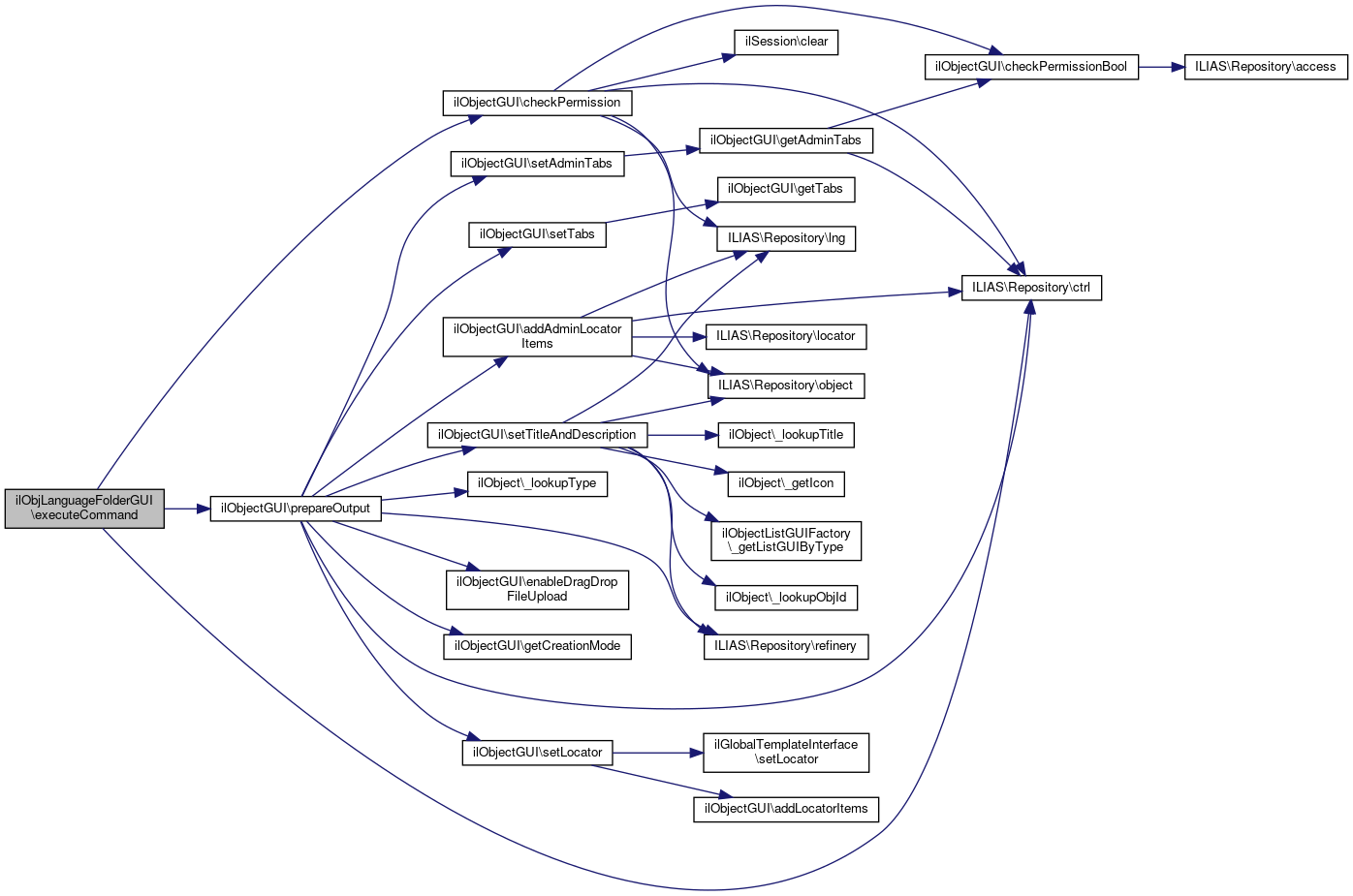 Here is the call graph for this function:| ilObjLanguageFolderGUI::executeCommand | ( | ) |