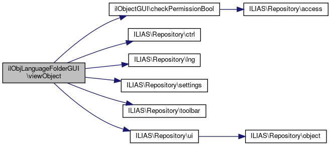 Here is the call graph for this function:| ilObjLanguageFolderGUI::viewObject | ( | ) |