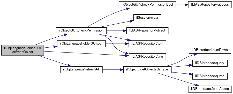 Here is the caller graph for this function:| ilObjLanguageFolderGUI::refreshObject | ( | ) |
