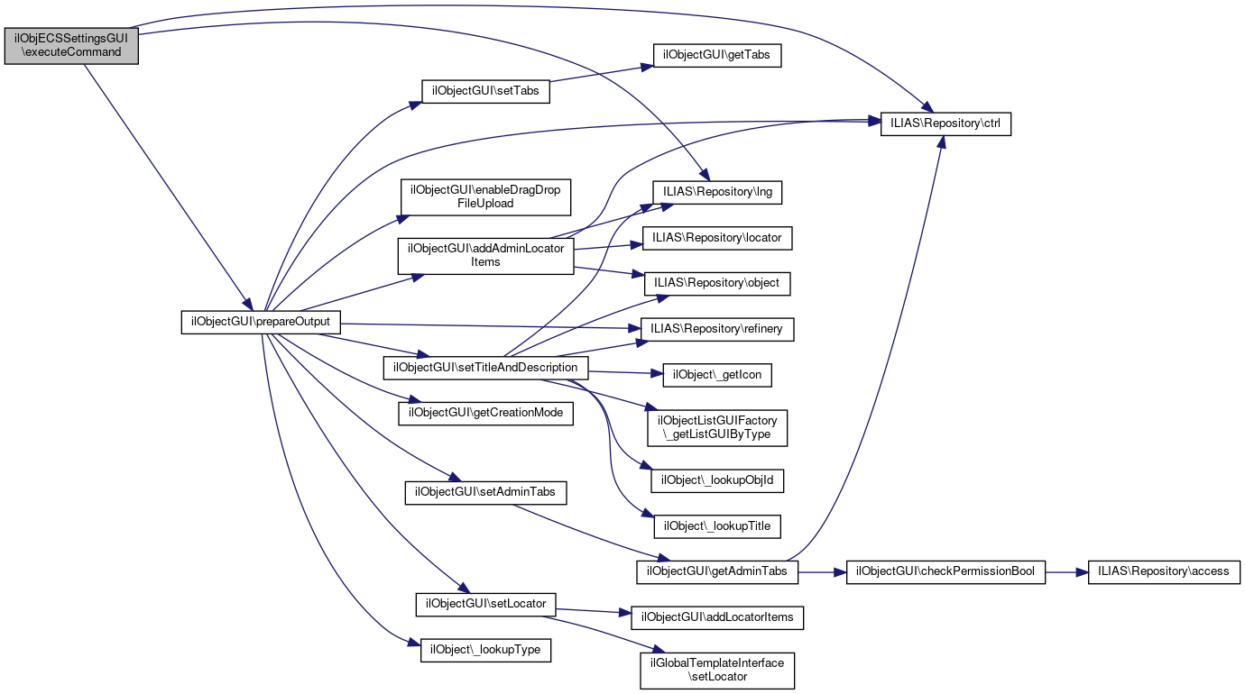 Here is the call graph for this function:| ilObjECSSettingsGUI::executeCommand | ( | ) |
