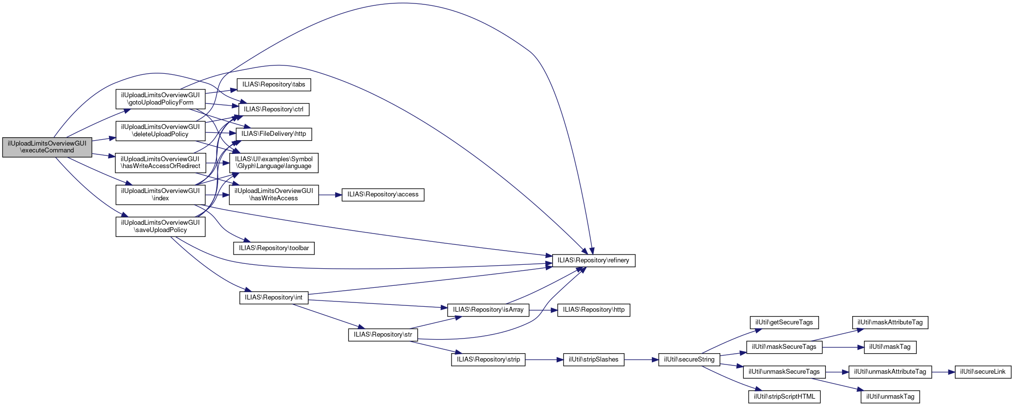 Here is the caller graph for this function:| ilUploadLimitsOverviewGUI::executeCommand | ( | ) |