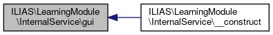 Here is the caller graph for this function:| ILIAS\LearningModule\InternalService::gui | ( | ) |