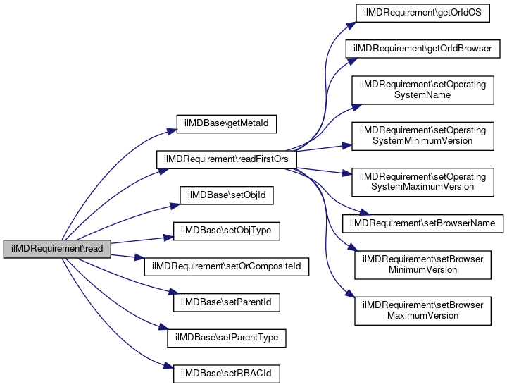 Here is the caller graph for this function:| ilMDRequirement::read | ( | ) |