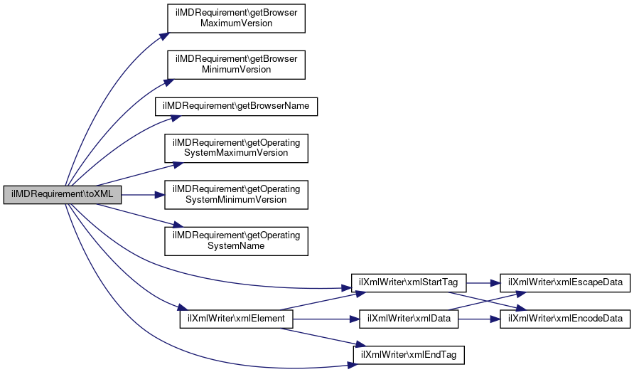 Here is the caller graph for this function:| ilMDRequirement::toXML | ( | ilXmlWriter | $writer | ) |