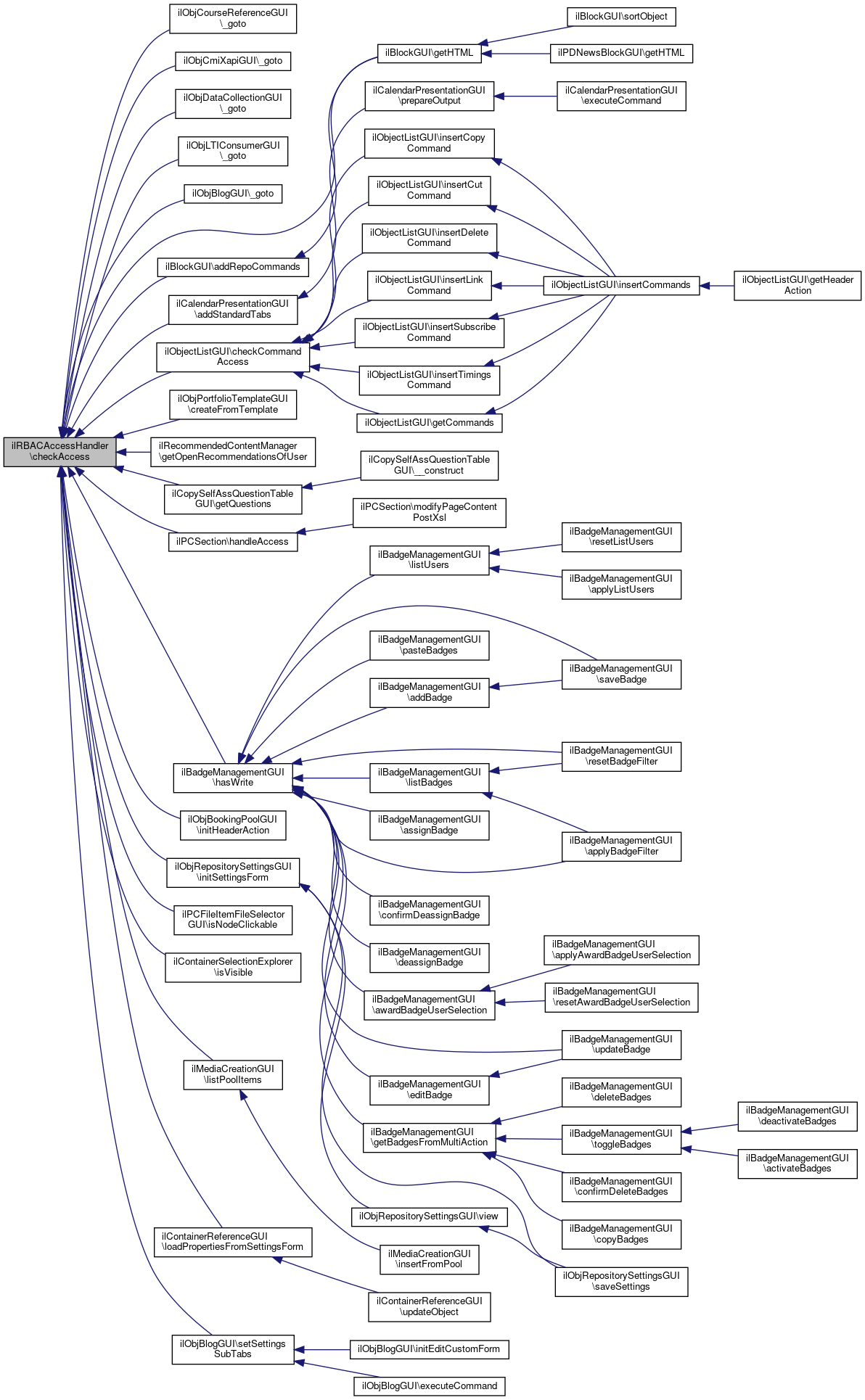 Referenced by ilObjCourseReferenceGUI\_goto(), ilObjCmiXapiGUI\_goto(), ilObjDataCollectionGUI\_goto(), ilObjLTIConsumerGUI\_goto(), ilObjBlogGUI\_goto(), ilBlockGUI\addRepoCommands(), ilCalendarPresentationGUI\addStandardTabs(), ilObjectListGUI\checkCommandAccess(), ilObjPortfolioTemplateGUI\createFromTemplate(), ilBlockGUI\getHTML(), ilRecommendedContentManager\getOpenRecommendationsOfUser(), ilCopySelfAssQuestionTableGUI\getQuestions(), ilPCSection\handleAccess(), ilBadgeManagementGUI\hasWrite(), ilObjBookingPoolGUI\initHeaderAction(), ilObjRepositorySettingsGUI\initSettingsForm(), ilPCFileItemFileSelectorGUI\isNodeClickable(), ilContainerSelectionExplorer\isVisible(), ilMediaCreationGUI\listPoolItems(), ilContainerReferenceGUI\loadPropertiesFromSettingsForm(), and ilObjBlogGUI\setSettingsSubTabs().