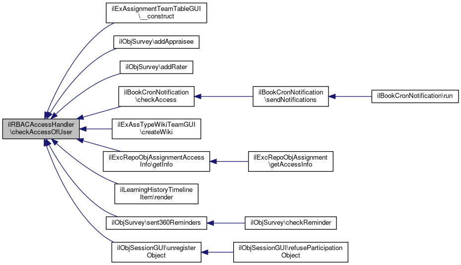 Referenced by ilExAssignmentTeamTableGUI\__construct(), ilObjSurvey\addAppraisee(), ilObjSurvey\addRater(), ilBookCronNotification\checkAccess(), ilExAssTypeWikiTeamGUI\createWiki(), ilExcRepoObjAssignmentAccessInfo\getInfo(), ilLearningHistoryTimelineItem\render(), ilObjSurvey\sent360Reminders(), and ilObjSessionGUI\unregisterObject().