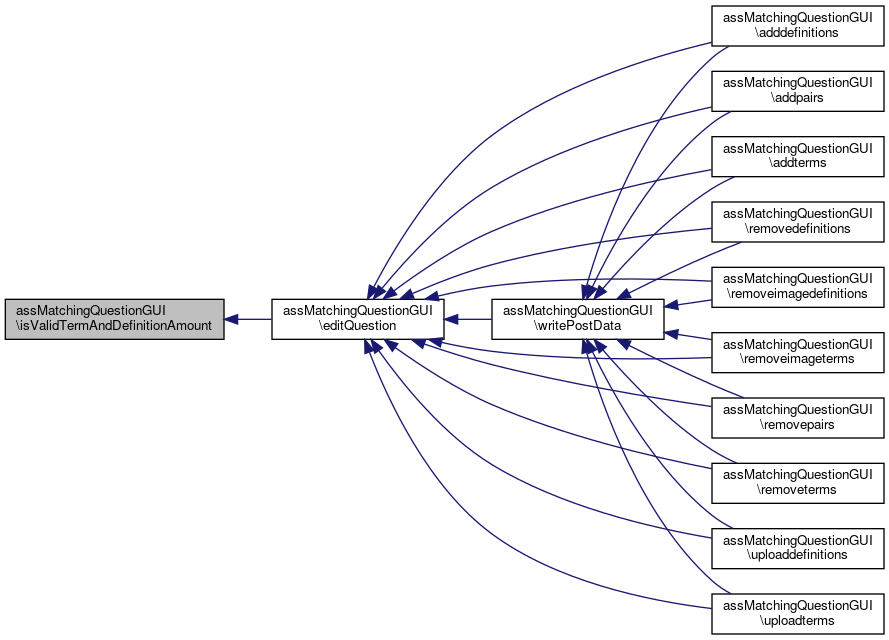 Here is the caller graph for this function:| assMatchingQuestionGUI::removedefinitions | ( | ) |