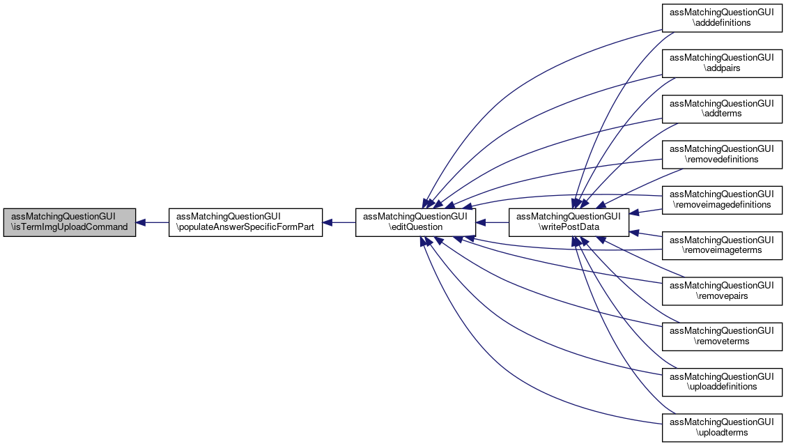 Here is the call graph for this function:| assMatchingQuestionGUI::removeimagedefinitions | ( | ) |