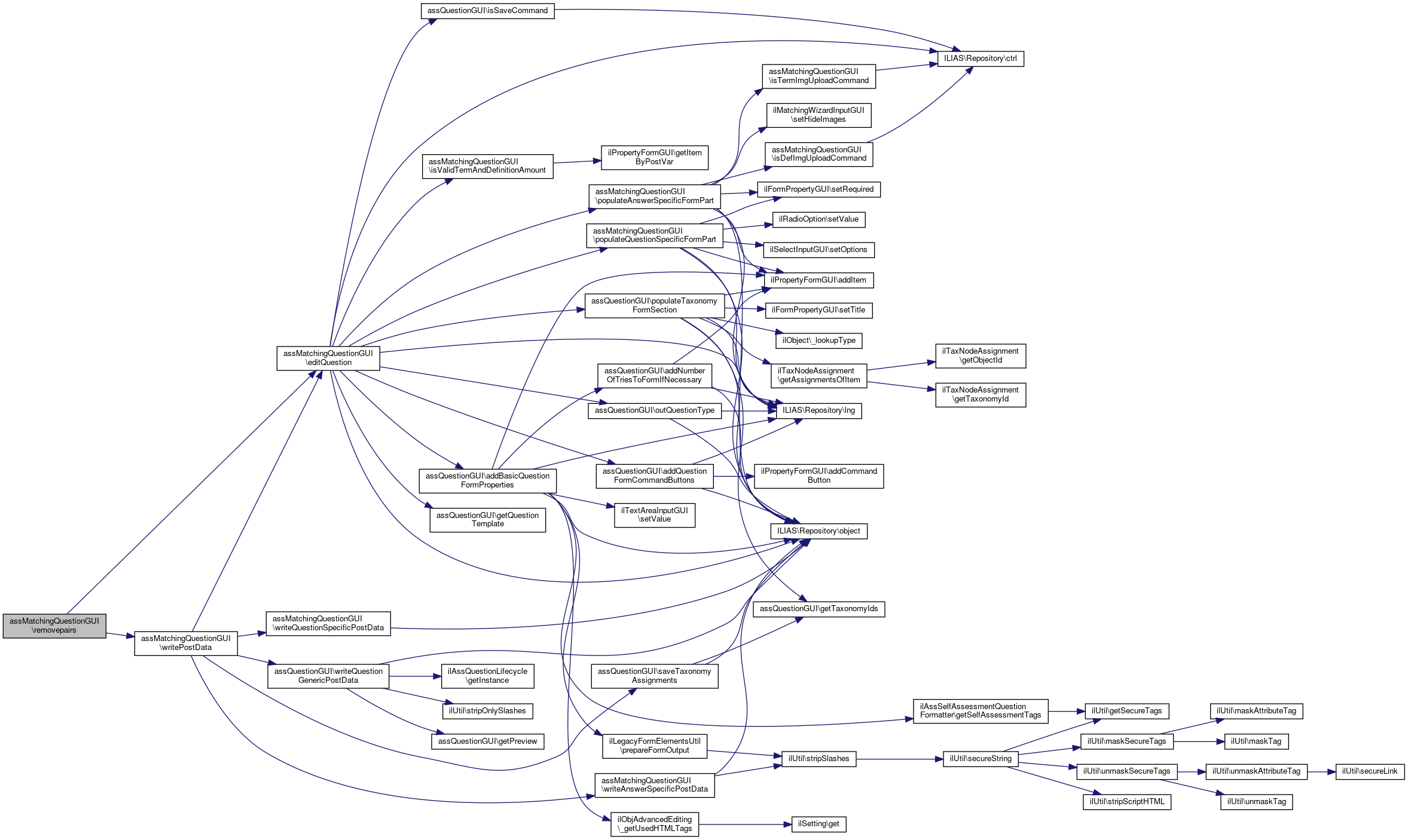 Here is the call graph for this function:| assMatchingQuestionGUI::removepairs | ( | ) |