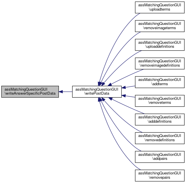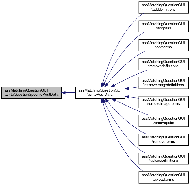 Here is the caller graph for this function:| assMatchingQuestionGUI::writeQuestionSpecificPostData | ( | ilPropertyFormGUI | $form | ) |