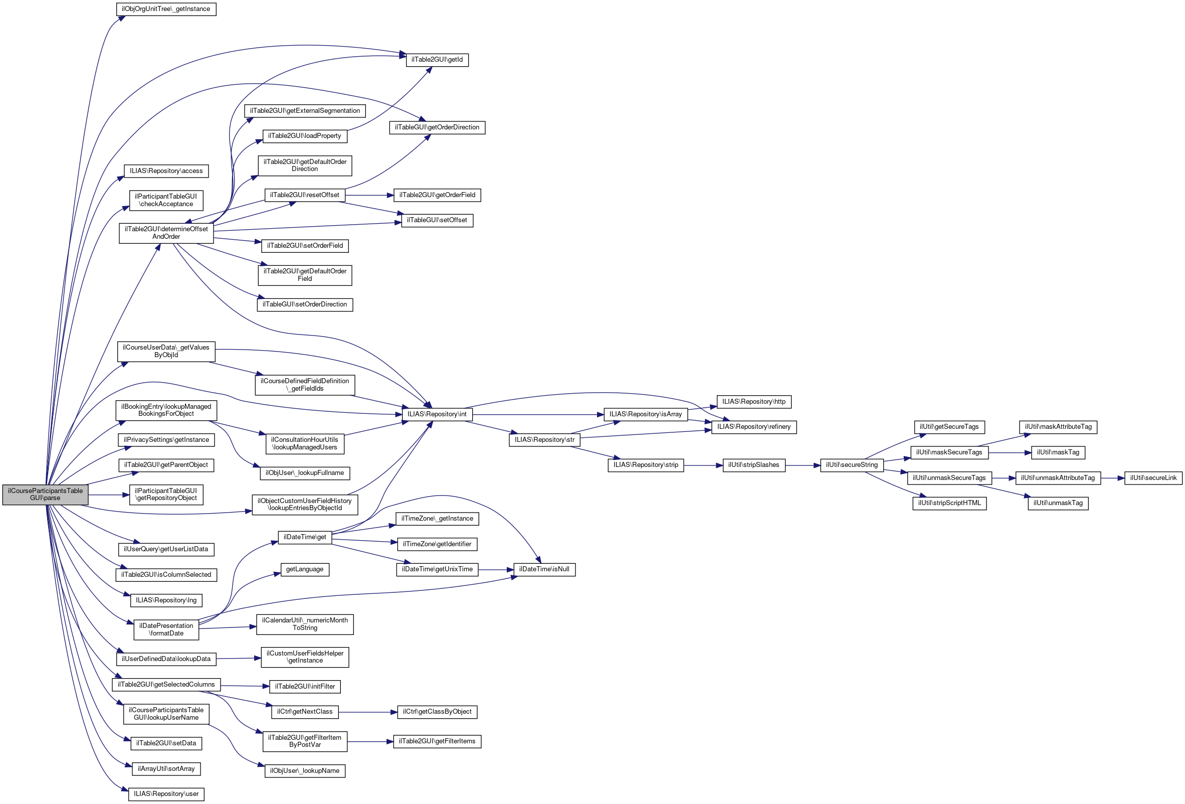 References ilTableGUI\$data, ilObjOrgUnitTree\_getInstance(), ilCourseUserData\_getValuesByObjId(), ILIAS\Repository\access(), ilParticipantTableGUI\checkAcceptance(), ilTable2GUI\determineOffsetAndOrder(), ilDatePresentation\formatDate(), ilTable2GUI\getId(), ilPrivacySettings\getInstance(), ilTableGUI\getOrderDirection(), ilTable2GUI\getParentObject(), ilParticipantTableGUI\getRepositoryObject(), ilTable2GUI\getSelectedColumns(), ilUserQuery\getUserListData(), IL_CAL_UNIX, ILIAS\Repository\int(), ilTable2GUI\isColumnSelected(), ILIAS\Repository\lng(), ilUserDefinedData\lookupData(), ilObjectCustomUserFieldHistory\lookupEntriesByObjectId(), ilBookingEntry\lookupManagedBookingsForObject(), lookupUserName(), ilTable2GUI\setData(), ilArrayUtil\sortArray(), and ILIAS\Repository\user().