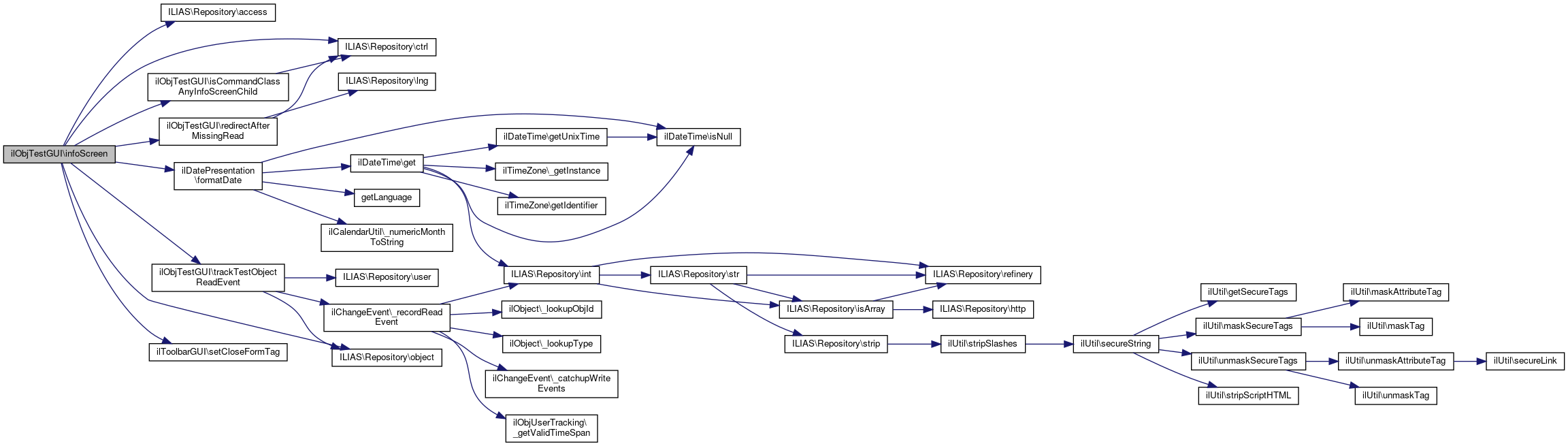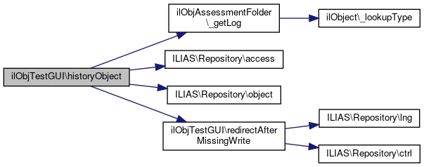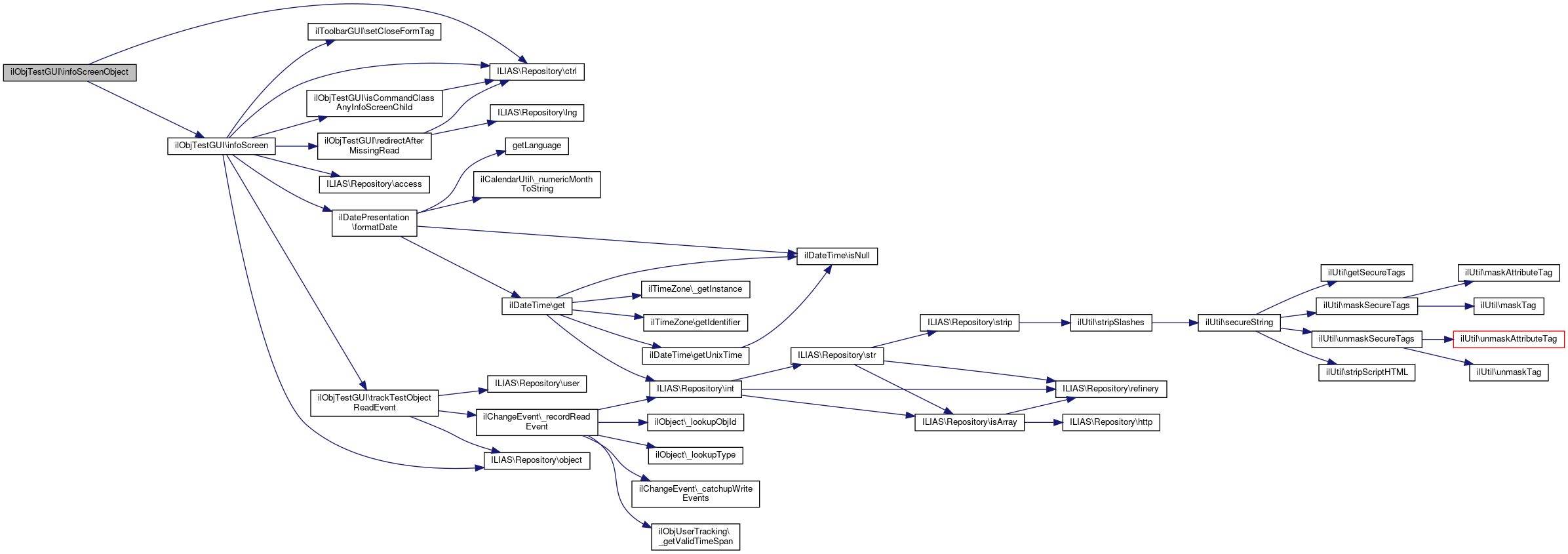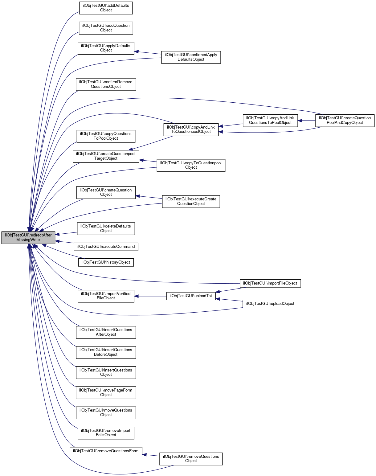 Here is the call graph for this function:| ilObjTestGUI::redirectToInfoScreenObject | ( | ) |