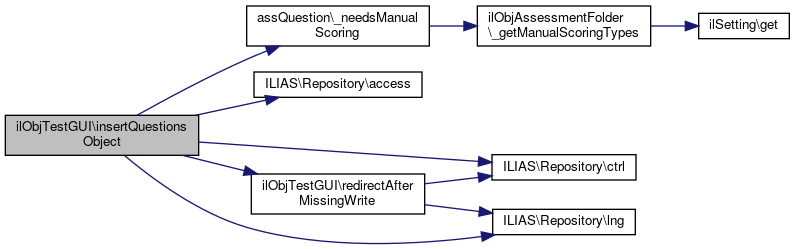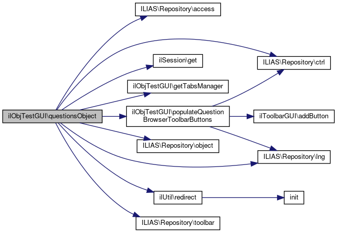Here is the call graph for this function:| ilObjTestGUI::questionsObject | ( | ) |