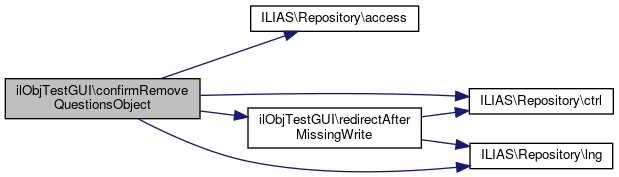 Here is the call graph for this function:| ilObjTestGUI::removeQuestionsForm | ( | $checked_questions | ) |