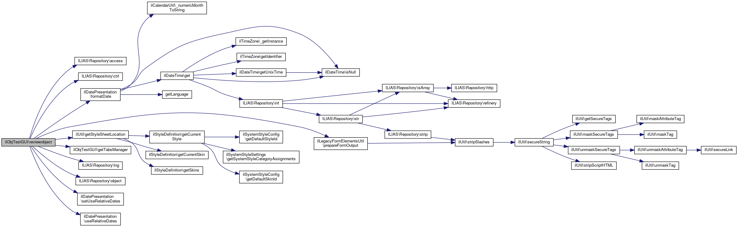 Here is the call graph for this function:| ilObjTestGUI::reviewobject | ( | ) |