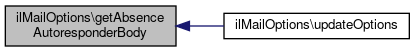 Here is the call graph for this function:| ilMailOptions::getAbsenceAutoresponderBody | ( | ) |