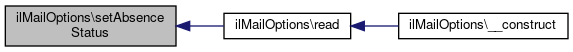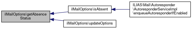 Here is the caller graph for this function:| ilMailOptions::getAbsenceStatus | ( | ) |