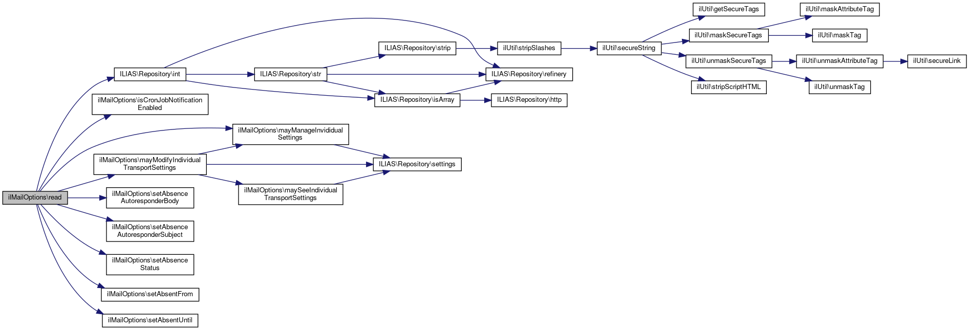 Here is the call graph for this function:| ilMailOptions::createMailOptionsEntry | ( | ) |