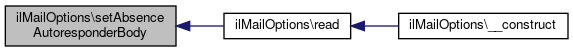 Here is the caller graph for this function:| ilMailOptions::setAbsenceAutoresponderBody | ( | string | $absence_auto_responder_body | ) |