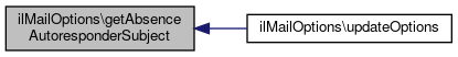 Here is the caller graph for this function:| ilMailOptions::getAbsenceAutoresponderSubject | ( | ) |