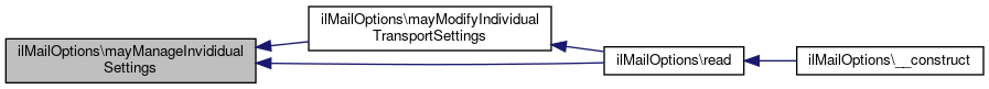 Here is the caller graph for this function:| ilMailOptions::mayModifyIndividualTransportSettings | ( | ) |