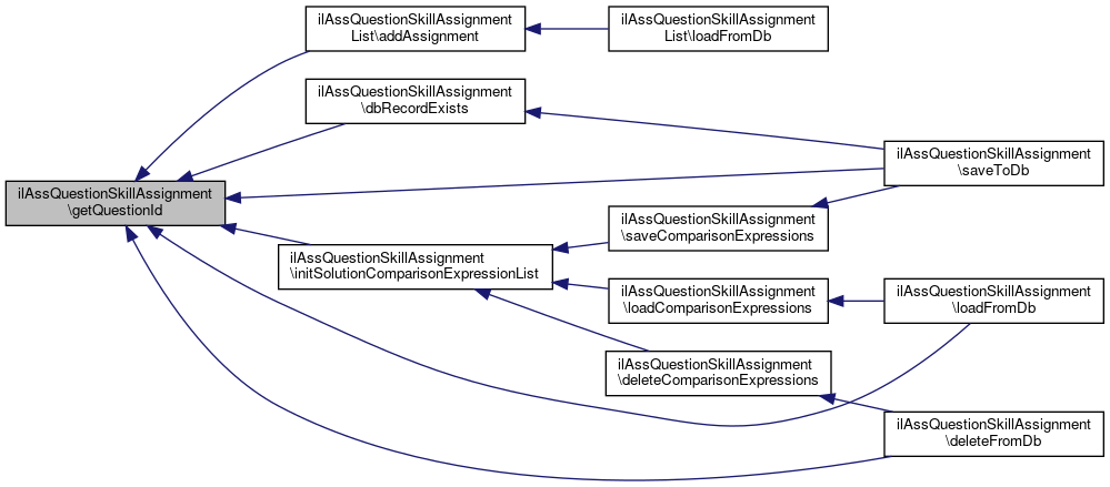 Here is the caller graph for this function:| ilAssQuestionSkillAssignment::getQuestionId | ( | ) |