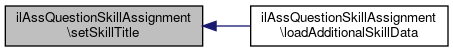 Here is the caller graph for this function:| ilAssQuestionSkillAssignment::setSkillTitle | ( | $skillTitle | ) |