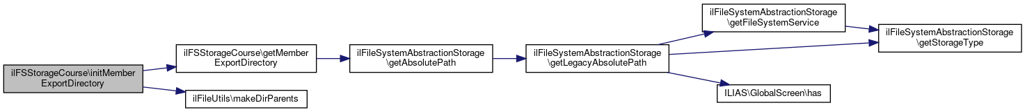 Here is the call graph for this function:| ilFSStorageCourse::initMemberExportDirectory | ( | ) |