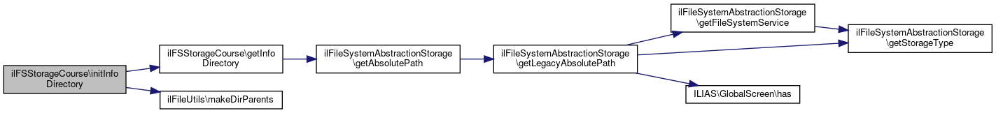 Here is the call graph for this function:| ilFSStorageCourse::initInfoDirectory | ( | ) |