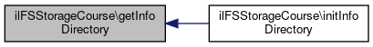Here is the call graph for this function:| ilFSStorageCourse::getInfoDirectory | ( | ) |