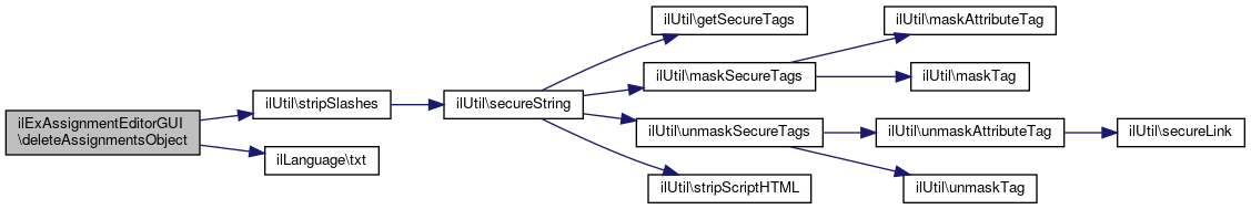 Here is the call graph for this function:| ilExAssignmentEditorGUI::deleteAssignmentsObject | ( | ) |