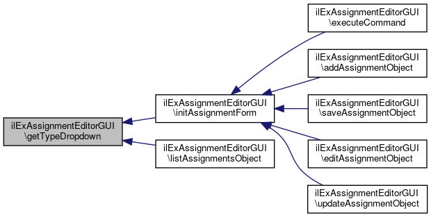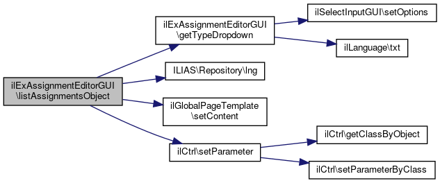 Here is the caller graph for this function:| ilExAssignmentEditorGUI::listAssignmentsObject | ( | ) |