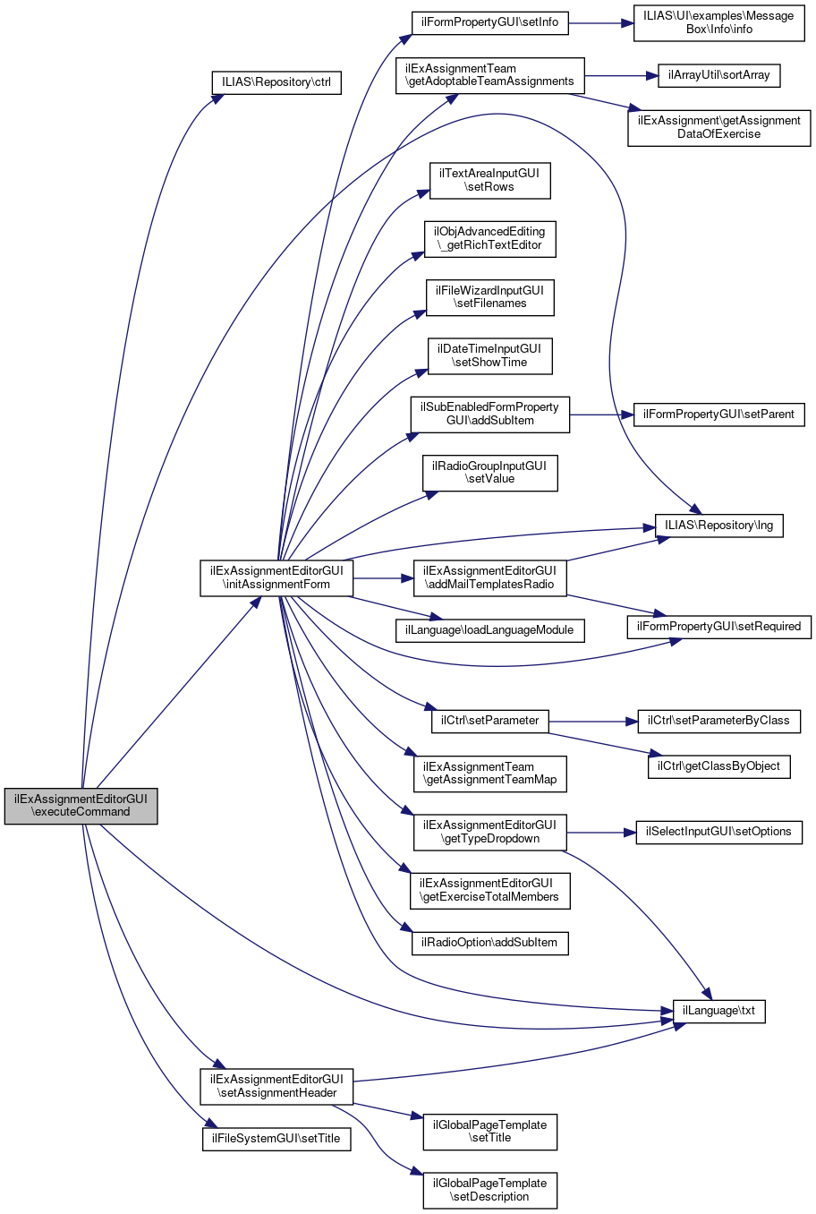 Here is the call graph for this function:| ilExAssignmentEditorGUI::executeCommand | ( | ) |