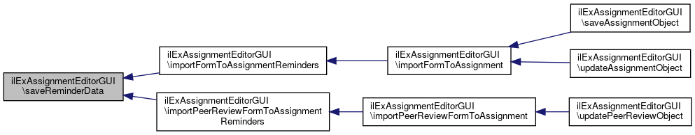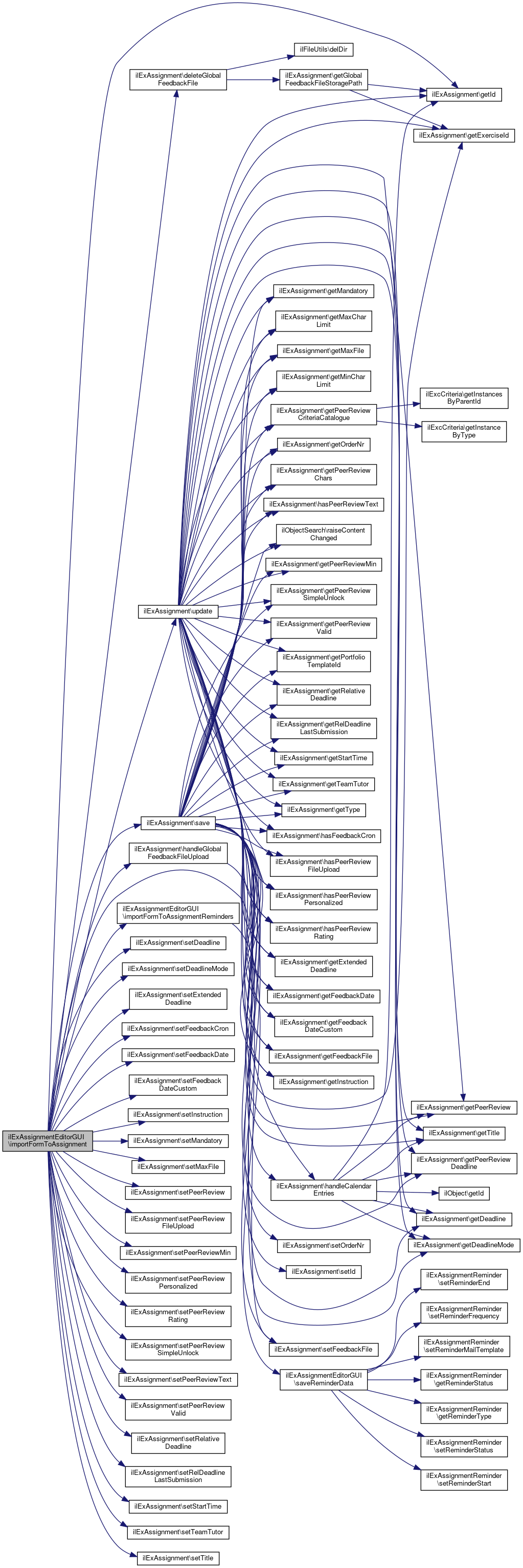 References ilExAssignment\deleteGlobalFeedbackFile(), ilExAssignment\getId(), ilExAssignment\handleGlobalFeedbackFileUpload(), importFormToAssignmentReminders(), ilExAssignment\PEER_REVIEW_VALID_NONE, ilExAssignment\save(), ilExAssignment\setDeadline(), ilExAssignment\setDeadlineMode(), ilExAssignment\setExtendedDeadline(), ilExAssignment\setFeedbackCron(), ilExAssignment\setFeedbackDate(), ilExAssignment\setFeedbackDateCustom(), ilExAssignment\setFeedbackFile(), ilExAssignment\setInstruction(), ilExAssignment\setMandatory(), ilExAssignment\setMaxFile(), ilExAssignment\setPeerReview(), ilExAssignment\setPeerReviewFileUpload(), ilExAssignment\setPeerReviewMin(), ilExAssignment\setPeerReviewPersonalized(), ilExAssignment\setPeerReviewRating(), ilExAssignment\setPeerReviewSimpleUnlock(), ilExAssignment\setPeerReviewText(), ilExAssignment\setPeerReviewValid(), ilExAssignment\setRelativeDeadline(), ilExAssignment\setRelDeadlineLastSubmission(), ilExAssignment\setStartTime(), ilExAssignment\setTeamTutor(), ilExAssignment\setTitle(), and ilExAssignment\update().