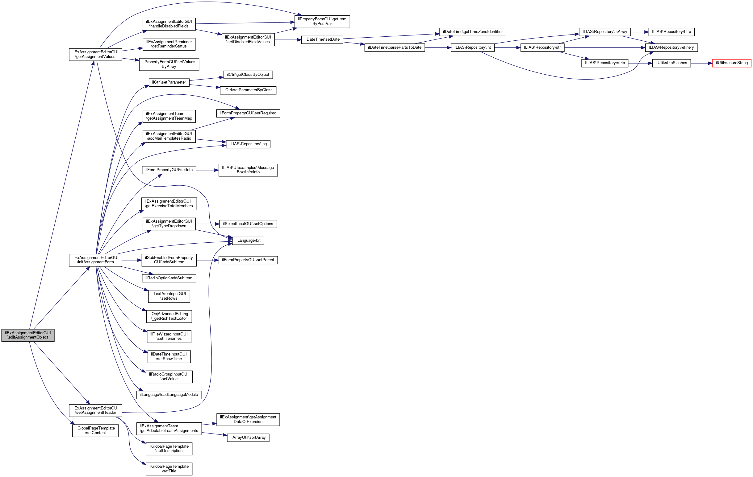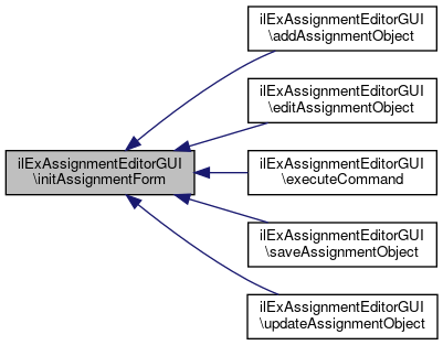 Here is the call graph for this function:| ilExAssignmentEditorGUI::editAssignmentObject | ( | ) |