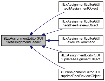 Here is the caller graph for this function:| ilExAssignmentEditorGUI::setAssignmentHeader | ( | ) |
