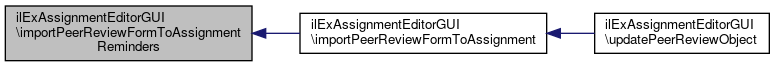 References ilExAssignment\getId(), importPeerReviewFormToAssignmentReminders(), ilExAssignment\PEER_REVIEW_VALID_NONE, ilExAssignment\setPeerReviewChars(), ilExAssignment\setPeerReviewCriteriaCatalogue(), ilExAssignment\setPeerReviewDeadline(), ilExAssignment\setPeerReviewFileUpload(), ilExAssignment\setPeerReviewMin(), ilExAssignment\setPeerReviewPersonalized(), ilExAssignment\setPeerReviewRating(), ilExAssignment\setPeerReviewSimpleUnlock(), ilExAssignment\setPeerReviewText(), ilExAssignment\setPeerReviewValid(), and ilExAssignment\update().