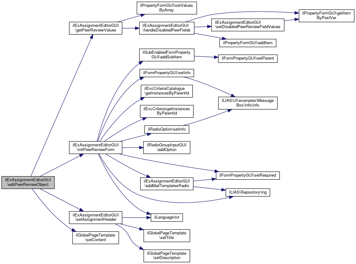 Here is the call graph for this function:| ilExAssignmentEditorGUI::editPeerReviewObject | ( | ilPropertyFormGUI | $a_form = null | ) |